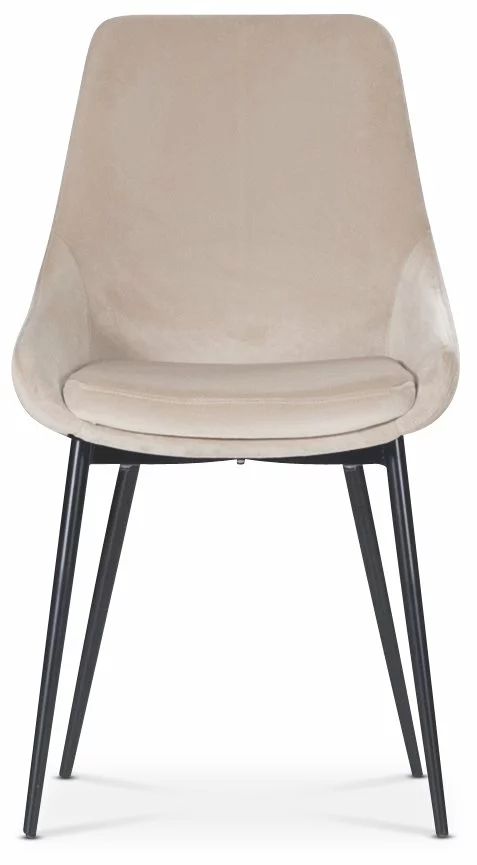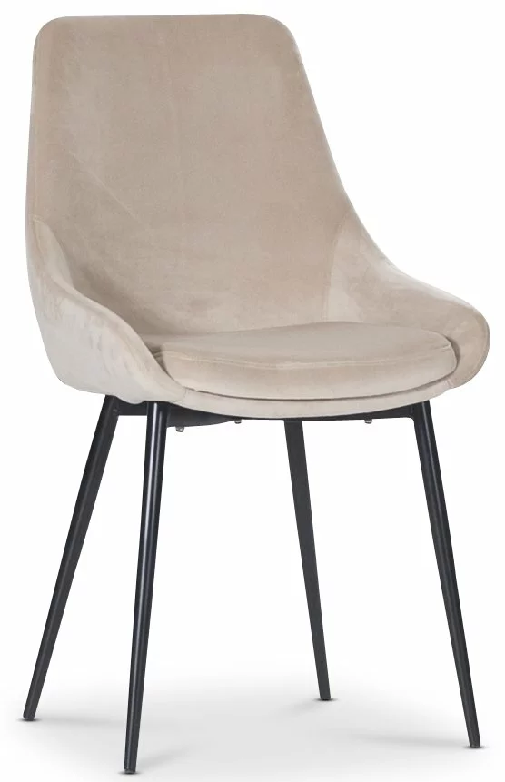 Theo-tuoli, hyvä istumamukavuus, modernila ja tyylikkäällä designilla sekä beige ylellisellä samettikankaalla! Mustat metallijalat.