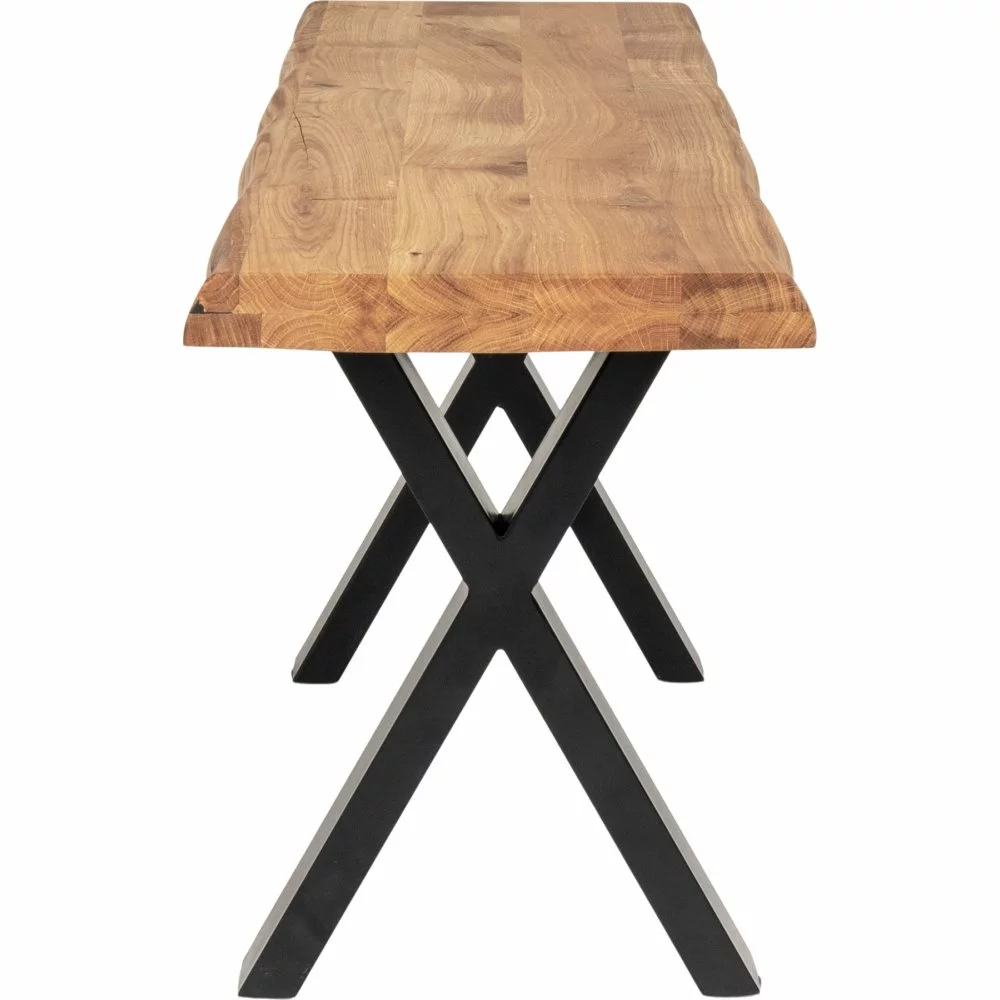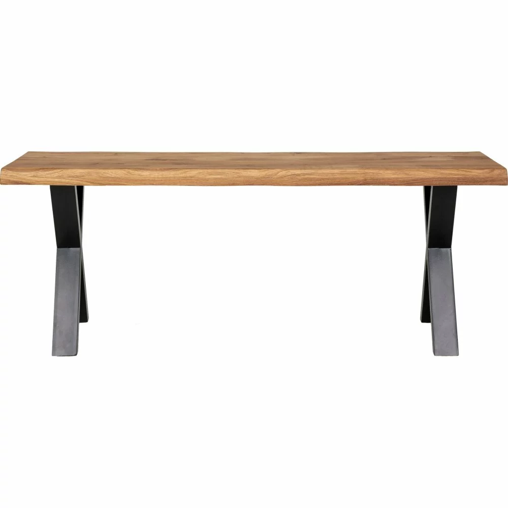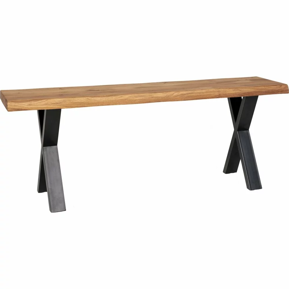 Penkki aaltoilevalla reunalla. Valmistettu tammesta ja teräksestä. Vaatii jonkin verran kokoonpanoa.