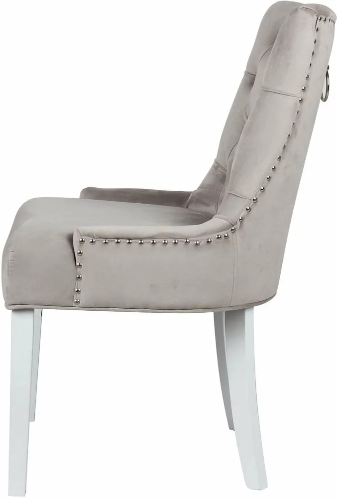 Tuva Decotique -tuoli on verhoiltu pehmeällä sametinkaltaisella beigellä kankaalla ja varustettu valkolakatuilla jaloilla. Tuolia koristaa kromatut niitit. Tuoli on hyvin valmistettu ja se on yksi meidän suosituimmista ruokatuoleistamme.