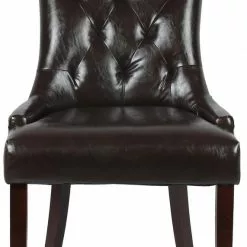 Eastport-ruokatuoli verhoiltu klassisella kestävällä nahkatyylisellä PU:lla ja ruskeapetsatut jalat. Tuolin selkänojan reunaa koristaa antiikinväriset niitit. Tuoli on hyvin valmistettu ja on yksi meidän suosituimpia tyylejä.