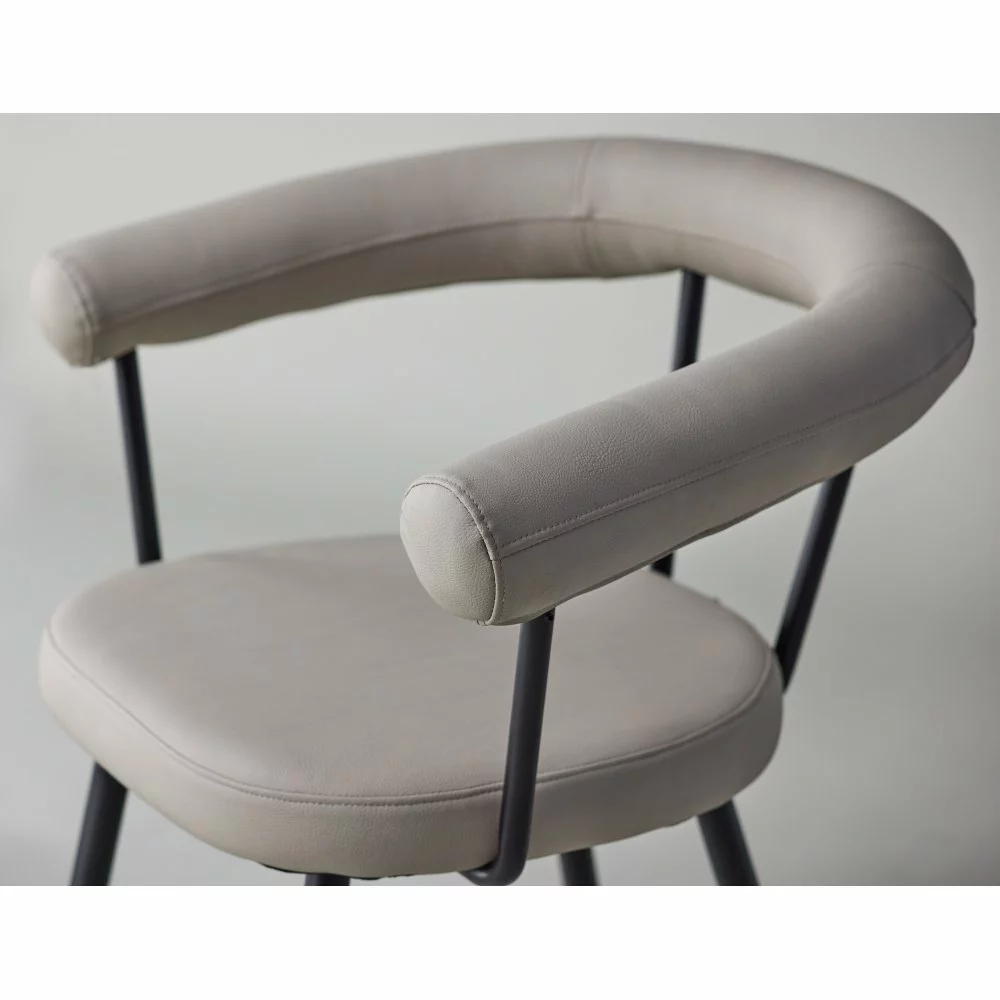Tämä herkullinen ruokatuoli modernilla ja hyvin harkitulla muotoilulla on yhtä mukava kuin tyylikäskin. Tuoli kuuluu Lustig-mallistoon ja luo nopeasti ylellisen vaikutelman kodin sydämeen. Pyöreä tuolin selkänoja ja pehmustettu istuin ovat tyylikkään luonnonvalkoista PU-verhoilua ja minimalistisen muotoilun runkorakenne on mustaa terästä. Sisusta kotisi ruokailutuoleilla, joissa istut iloisesti pitkään ja nautit mukavista aterioista yhdessä läheistesi kanssa.