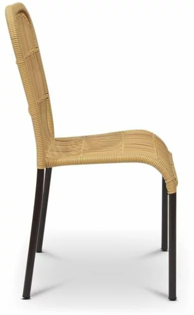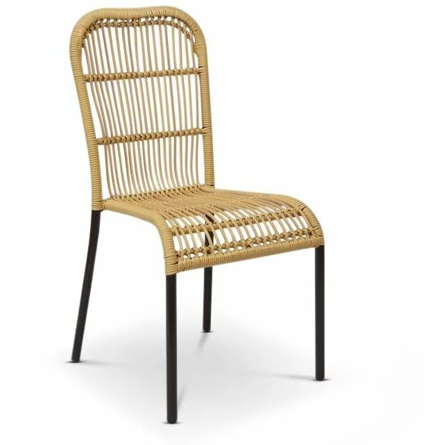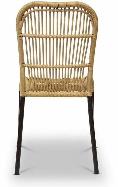 Vilani tuoli luonnonväristä keinorottinkia, mustat alumiinijalat. Tuoli tyylikkäillä yksityiskohdilla. Saatavana myös ruskeana synteettisenä rottinkina.