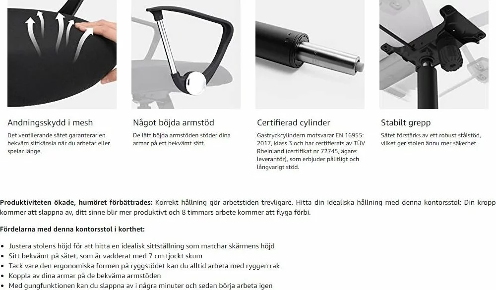 Ergonomisesti muotoiltu työtuoli monilla säätömahdollisuuksilla.